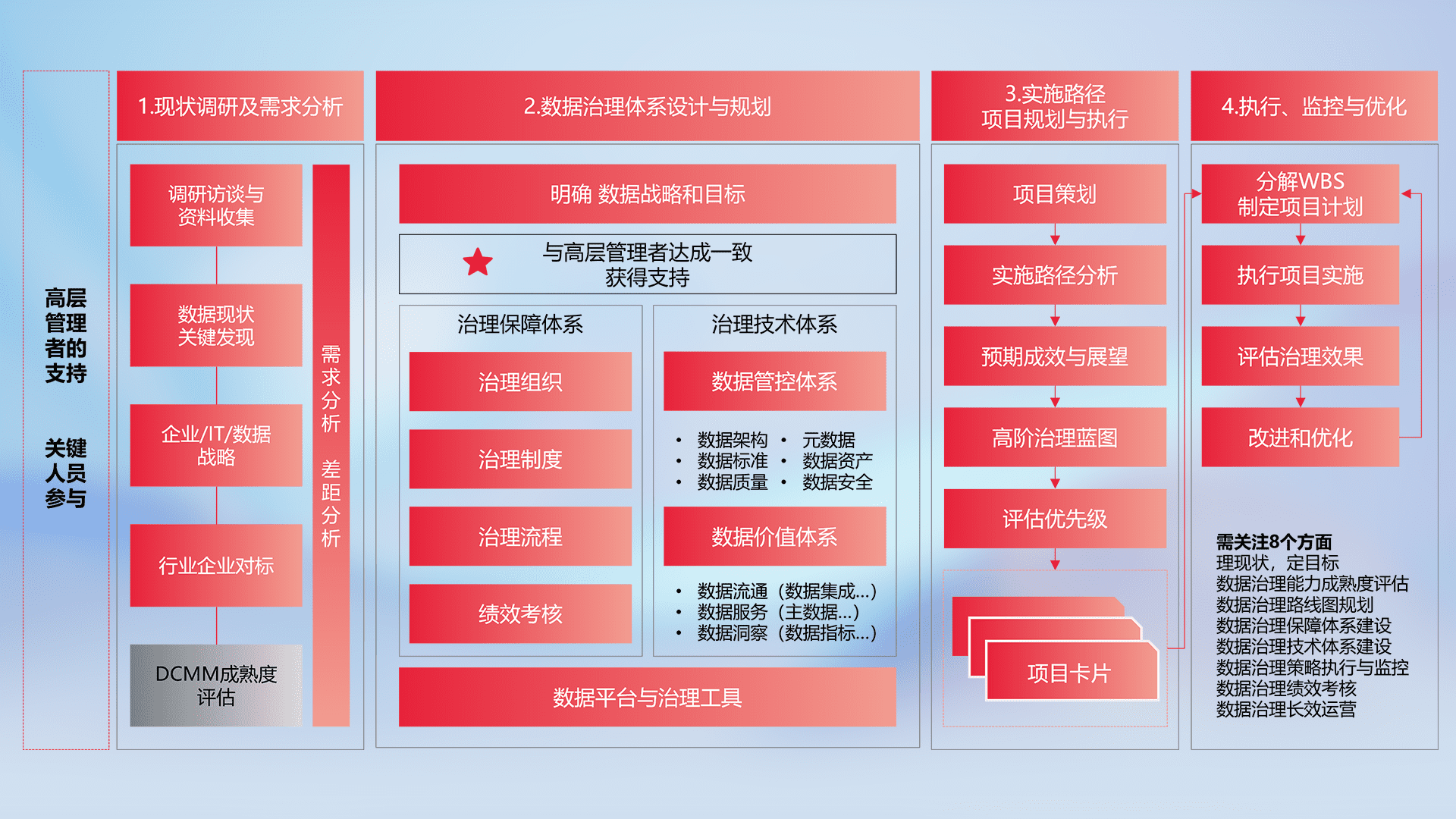 制定并执行统一的数据标准,,,,规范数据定义和格式,,,,消除冗余和不一致性,,,,实现跨部门和跨系统的数据一致性,,,为企业提供标准化的数据基础。。。