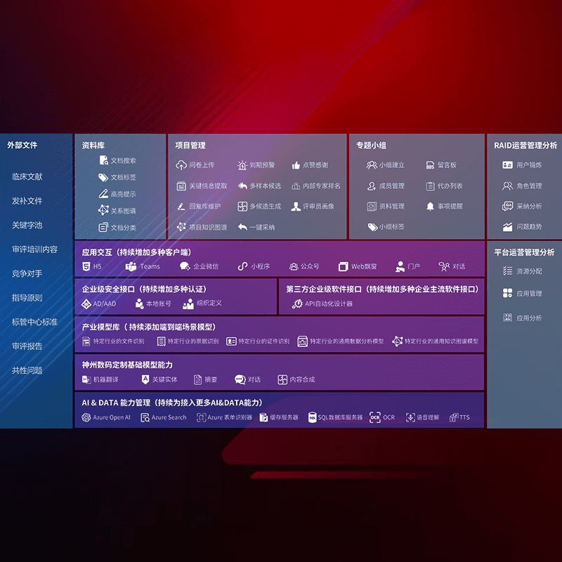 医疗器械产品上市前,,,要熟悉严格与繁复评审标准,,,,整理分析监管机构指导文件中的海量信息。。企业急需一个智能化解决方案,,,,提升知识管理效率,,,,提高评审通过率,,,,以提升其市场竞争力。。。
